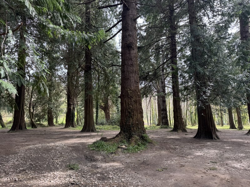 Tall red tree-pillars, evenly spread